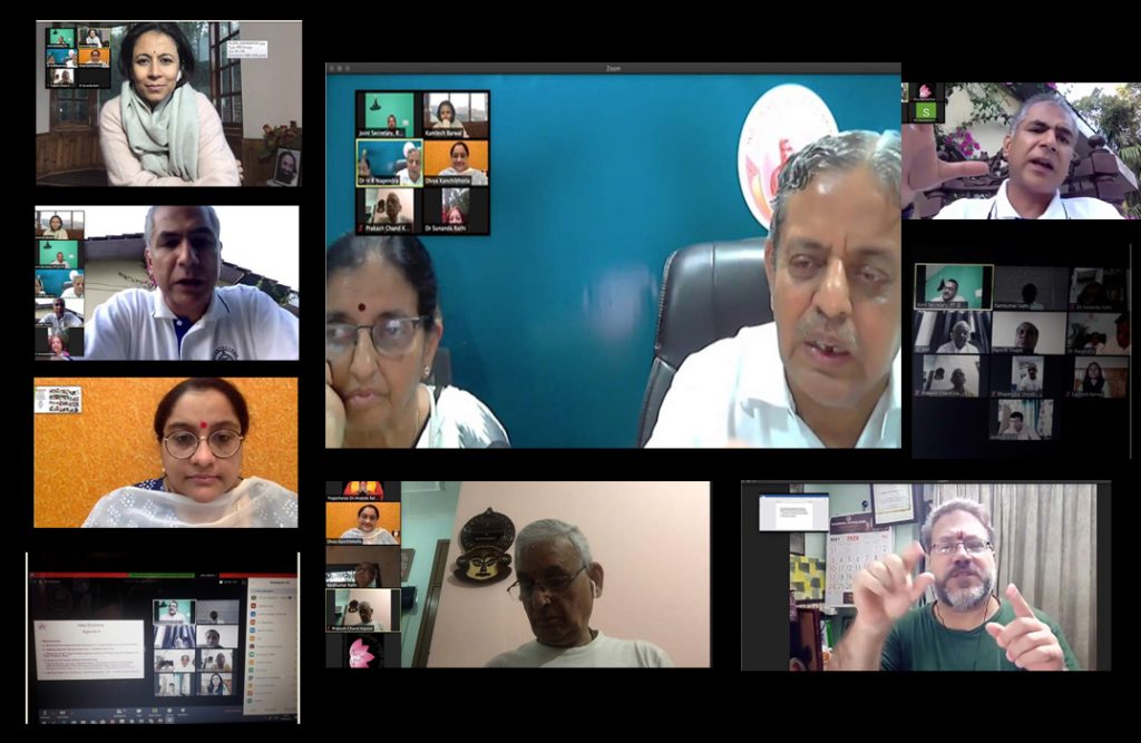 Technology no doubt has minimalised distances in this era of social distancing. The members of Executive Council of Indian Yoga Association sitting in different states and cities of the country came together via Zoom Video Conferencing on May 4, 2020 at 6:30 pm.