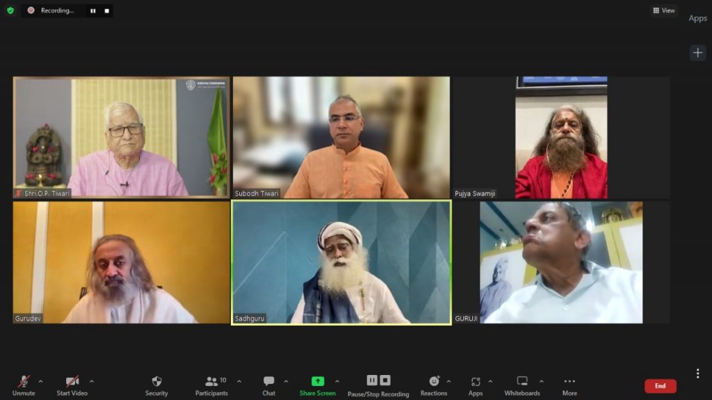 The meeting saw the divine presence of Chairman Gurudev Sri Sri Ravi Shankar, Shri Sadhguru Jaggi Vasudev, Shri O.P.Tiwari, Swami Chidananda Saraswati, Guruji HR Nagendra and Shri Subodh Tiwari, Secretary General.
