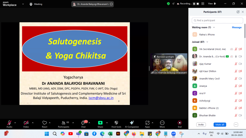 On the sacred occasion of Sri Ram Navami and the eve of World Health Day, Yogacharya Dr. Ananda Balayogi Bhavanani delivered a transformative discourse as part of the 15th session of the CYCLE program. With profound clarity and depth, he explored how Yoga Therapy, grounded in the ancient Indian tradition, is perfectly aligned with modern salutogenic principles to promote dynamic, holistic wellness.
