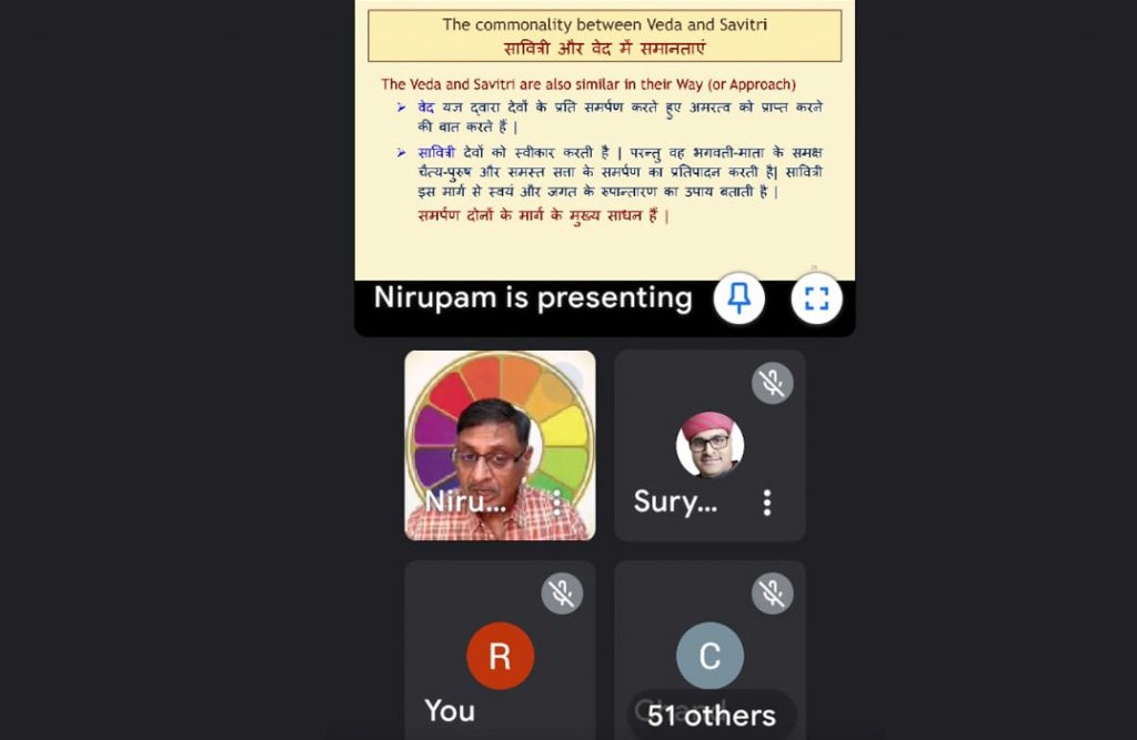 Dr. Rohtagi said that Sri Aurobindo, the author or visionary of Savitri, is the sage of today’s era. Savitri is the Veda of today’s era, composed by the sages of today’s era. The webinar concluded with a Q&A session and Shanti Mantra.