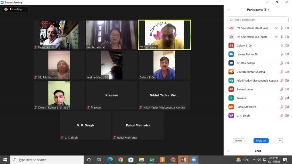 Delhi State Chapter Committee of IYA met online for the renominations on October 14, 2022 under the leadership of Shri Ravi Tumuluri.