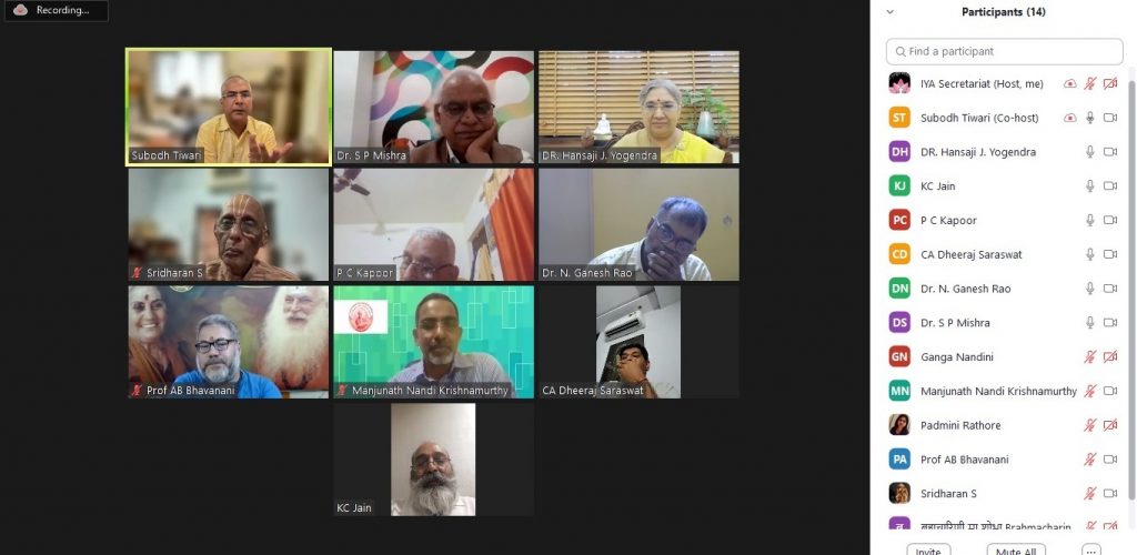 The meeting saw the presence of Maa Dr Hansaji Yogendra, President, Dr Chinmay Pandya, Vice President, Shri S Sridharan, Vice President, Shri Subodh Tiwari, Secretary General, Dr Ananda Balayogi Bhavanani, Joint Secretary, Brahmacharini Shobha, Joint Secretary, Shri KC Jain, Treasurer, Smt Padmini Rathore, Working Director, Standing Publications, Publicity and PR Committee, Dr S P Mishra, CEO, PrCB, Shri PC Kapoor, Director, Standing Finance Committee, Dr Ganesh Rao, Director, Standing Academics and Accreditation Committee, Dr Manjunath Sharma, Director, Standing Research Committee and Shri Dheeraj Saraswat, Ms Ganga Nandini as Special Invitees.