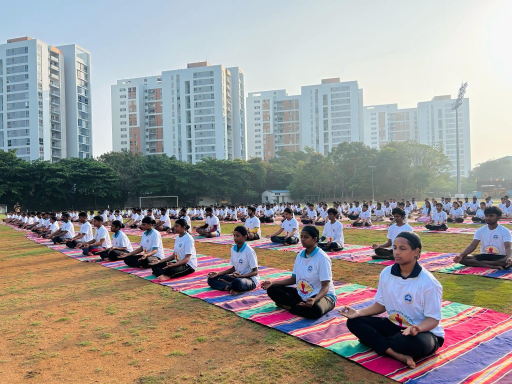 Under the gentle warmth of the morning sun, students engaged in energizing yoga practices, reflecting the transformative power of yoga in promoting physical, mental, and emotional well-being among the youth.