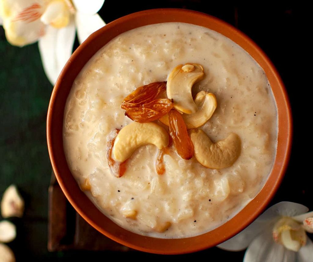 A gentle, healing rice-and-milk porridge enriched with ghee and spices balances Vata and Pitta, improves digestion, and builds ojas (immunity and reproductive vitality).