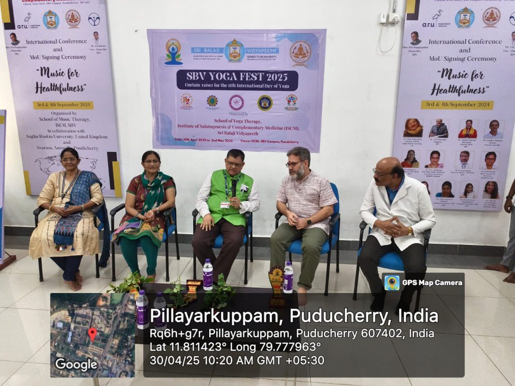 School of Yoga Therapy (SYT), ISCM, SBV (Associate Centre of the Indian Yoga Association) conducted the SBV Yoga Fest 2025 (as a Curtain raiser for the 11th IDY) under the signature event category of Yoga Unplugged. This was a Regional level program for all the students of health care professions’ at SBV Pondicherry, the off-campus branches at Chennai and Karaikal and students of all colleges/universities in and around Pondicherry.