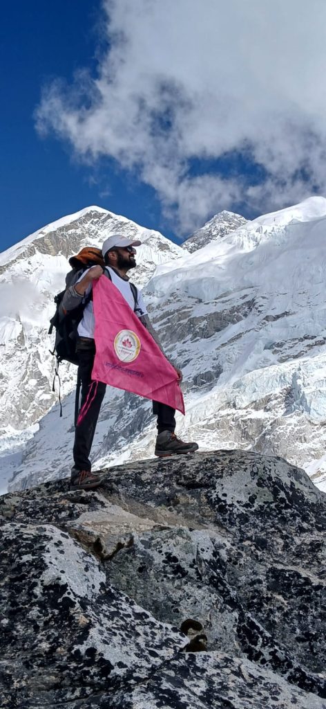 The Indian Yoga Association celebrates a remarkable achievement as the Karnataka State Chapter team, representing our esteemed Associate Centre Yogavijnana, reached the Mount Everest Base Camp last month. Under the inspiring leadership of our Core Team Convenor, Yogamitra Sri Vinay Siddaiah, the team proudly hoisted both the National Flag and the IYA Flag at this iconic altitude.
