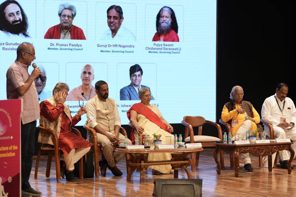 Education emerged as another major theme. The panel expressed the need for a structured, ongoing academic and professional development framework for yoga practitioners. Dr. Bhavanani proposed the creation of CARE — Continuous Academics, Research and Education in Yoga, a robust system designed to elevate teachers’ knowledge, deepen their understanding of classical texts and strengthen overall pedagogy. Alongside this, the importance of communication and soft skills was repeatedly emphasised. While many teachers possess strong technical ability, not all are equally comfortable with public communication, interpersonal sensitivity or multicultural contexts—skills essential for reaching diverse audiences both within India and internationally.