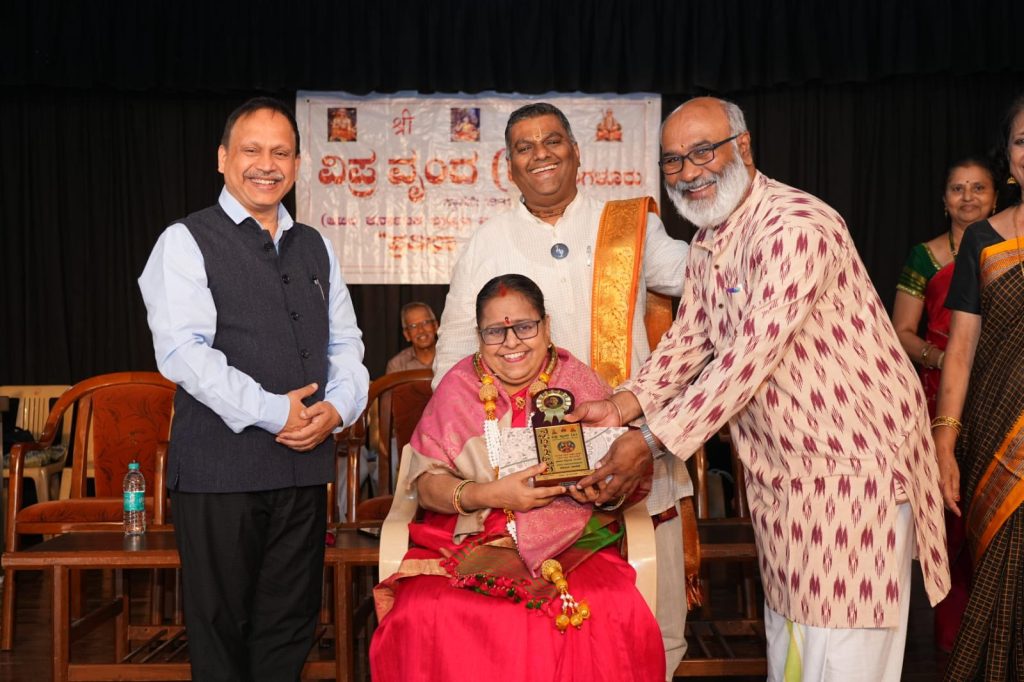 On September 7, 2025, Sri Subbu Bhaiya was invited as the Chief Guest at the Pratibha Puraskara event organized by the Vipra Vrunda Organization at JSS School Auditorium, Mysuru. The ceremony also witnessed the presence of Dr. Niranjan Vanalli, Honourable Vice Chancellor of Bengaluru North University. Addressing the gathering, Sri Subbu Bhaiya spoke on the antiquity and scientific relevance of the Vedas, emphasizing how their timeless wisdom continues to guide modern living. His unique and humorous analogy of the three varieties of Masala Dosa to explain the Advaita, Vishishtadvaita, and Dvaita philosophies was widely appreciated by the audience. On behalf of the Indian Yoga Association, he extended best wishes to all the awardees and encouraged everyone to join hands with the global Yoga movement. During the event, Smt. Padmalatha Mysuru, Senior Yoga Professional Member of IYA, was also felicitated for her contributions to yoga and literature.