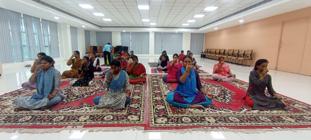 The sessions introduced employees to simple yoga practices, breathing techniques, and relaxation methods designed to reduce workplace fatigue and improve overall well-being.