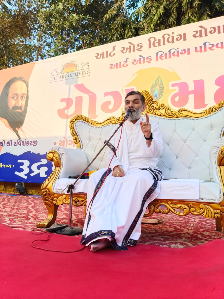 The program was conducted under the able guidance of Shri Shaileshji Rathod, Senior Teacher of Art of Living and Chairperson of the Indian Yoga Association – Gujarat Chapter. His insightful instructions and motivational address inspired participants to integrate yoga into their daily lives for physical, mental, and spiritual well-being.