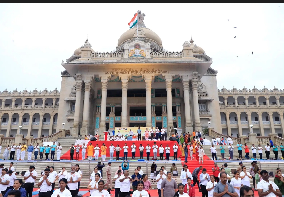 The program guided by Yog Guru Aaradhya, founder yoga gongotri has been successfully organised for 9th year at Grand steps of vidhana soudha Bangalore.